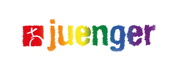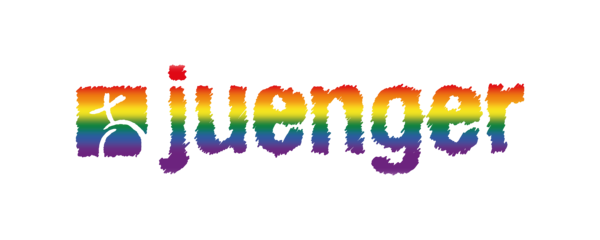 Regenbogenfarbene juenger-Logos – unser starkes Zeichen für Vielfalt und Zusammenhalt. Bei der Evangelischen Jugend von Westfalen sind alle willkommen, unabhängig von ihrer sexuellen Orientierung oder Geschlechtsidentität.
