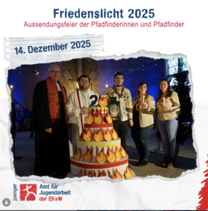 Mit dem leuchtenden Zeichen des Friedens gehen die Pfadfinderinnen und Pfadfinder auf das Weihnachtsfest zu – verbunden durch den gemeinsamen Wunsch, dass aus einem Funken Mut viele Lichter der Hoffnung werden.